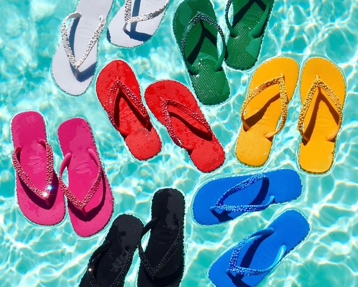 Questa volta tocca alle Havaianas, le classiche ciabatte infradito che tutti abbiamo indossato almeno una volta. Gollin le trasforma in un oggetto d’arte da indossare, ricoprendole di perle abbinate al colore della silhouette, per un risultato tanto pop quanto ricercato.